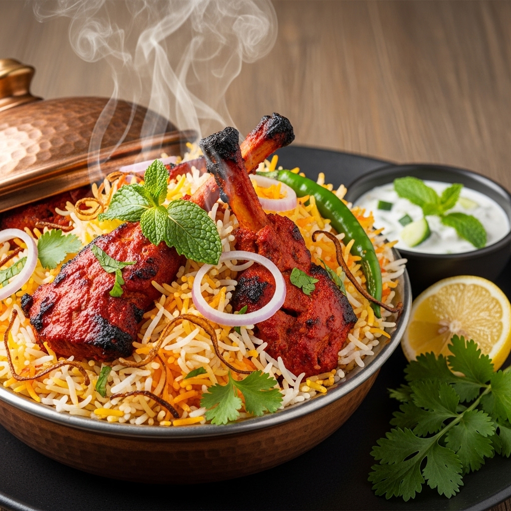 “Aromatic basmati rice layered with rich spices and tender meats. Our Biriyanis are a royal feast, cooked with tradition.”